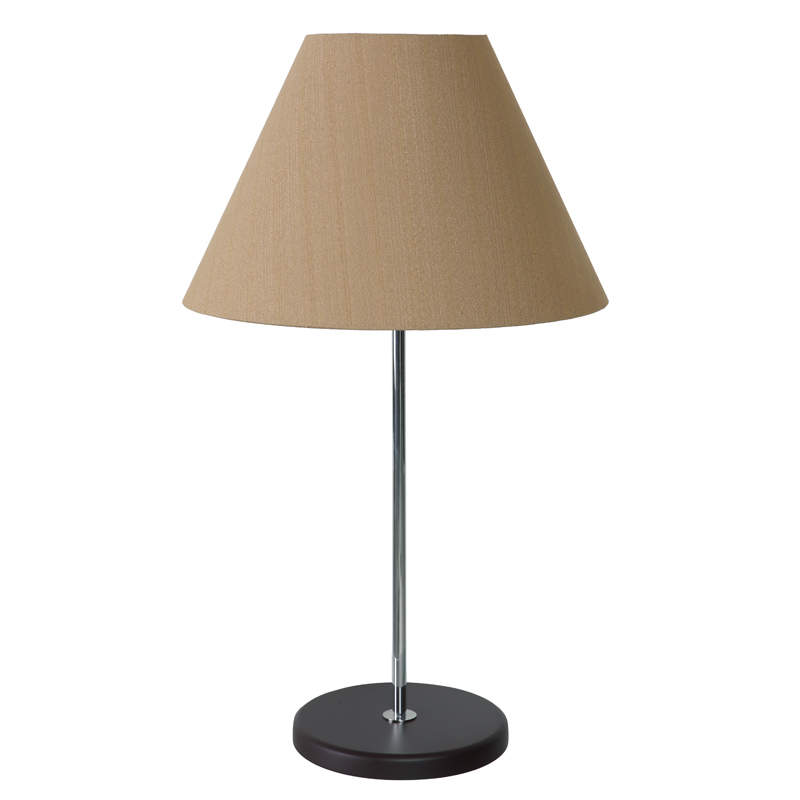 Descrição: Base em MDF preto laqueado e haste em alumínio polido. Cúpula em tecido. Soquete: E27